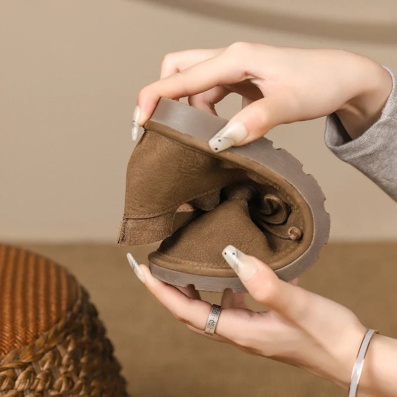 The Clara Leather Flats are crafted from genuine leather for a soft, supple feel that molds to your feet. Designed with delicate ruffled edges and a secure lace-up front, they offer a vintage-inspired look with everyday comfort. A flexible sole ensures ease of movement, making them perfect for all-day wear.
